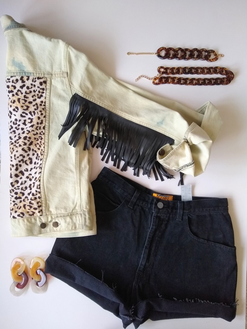 Kolejne szaleństwo cętkowe, kurtka dżinsowa z lamparcim wzorem na plecach i czarnymi frędzlami na rękawach. Możliwości zdobień kurtek jest bardzo dużo, w zależności od upodobań właścicielek dostosowujemy je do własnego stylu. Frędzle wyglądałyby też super z ćwiekami ale wtedy już bez wzoru cętkowego. Katana była w oryginale ciemna i nijaka, po kąpieli w Ace zyskała unikatowego wyglądu.