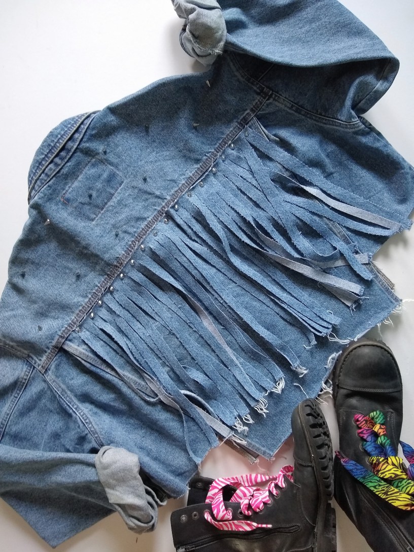 denim, tkanina, ubrania, ubrania Denim jacket rock with fringe Date: 24 czerwca 2019Author: otoczaki Modne w tym sezonie są kurtki jeansowe krótkie, obcięte poniżej kieszeni tzw. cropp. Moja propozycja to nierówno wycięta kurtka z przyczepionymi frędzlami. Rockowego stylu nadają wysokie wkręcane ćwieki. Udostępnij:TweetUdostępnij na Tumblr Kliknij, aby udostępnić na WhatsApp (Otwiera się w nowym oknie) WhatsApp WięcejLubię Wczytywanie… Powiązane
