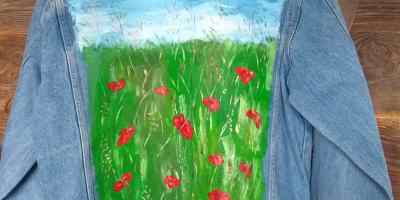 denim, farby akrylowe, ubrania Custom denim jacket hand painted poppy czyli maki malowane na katanie 15 czerwca 2020