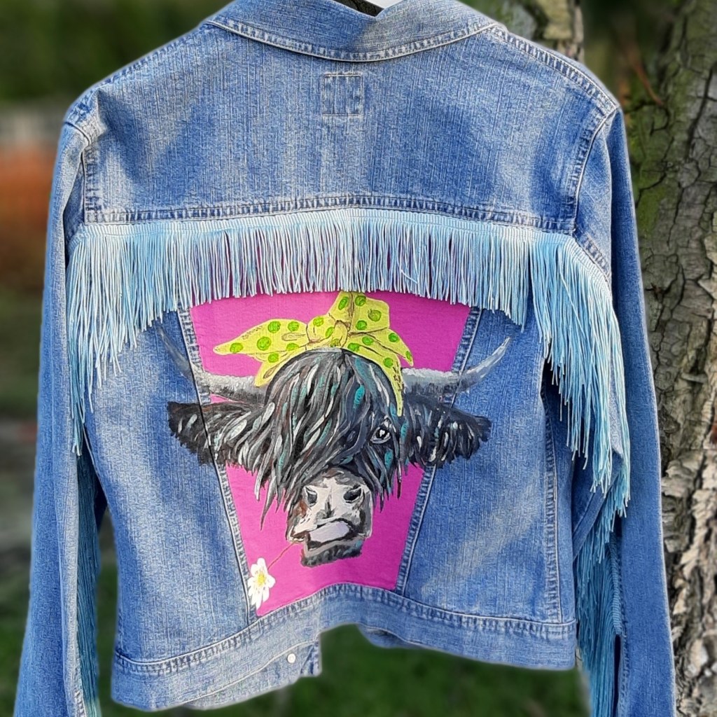 denim, farby akrylowe, ubrania Katana ręcznie malowana pop art z krową Date: 18 listopada 2020Author: otoczaki Mój ulubiony motyw, do którego uwielbiam wracać, to zwierzęta. Frędzle przycięłam,na okrągło, jak grzywkę, żeby pasowały do włochatej krówki. Udostępnij:TweetUdostępnij na Tumblr Kliknij, aby udostępnić na WhatsApp (Otwiera się w nowym oknie) WhatsApp WięcejLubię Wczytywanie… Powiązane