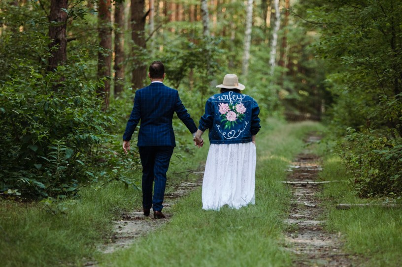 Od jakiegoś czasu denim nie rozstaje się z nami, nawet w najważniejszych chwilach naszego życia. Jest świetnym tłem dla sukienek ślubnych o różnym stylu. Kurtki mogą nosić oboje Państwa Młodych lub jedno z nich. Kwestia ozdób zależy od indywidualnych preferencji i praktyczne nie ma ograniczeń. Może być to namalowana grafika, frędzle, naszyta koronka, cekiny, hafty, inna tkanina, lub… wszystko razem 😁😁😁